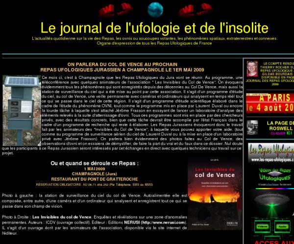 Nous interviendrons au sujet du col de Vence au prochain repas ufologique du Jura qui se déroulera le 1er mai au soir (vers les 21h) à Champagnole (responsable : Raymond Taffin).