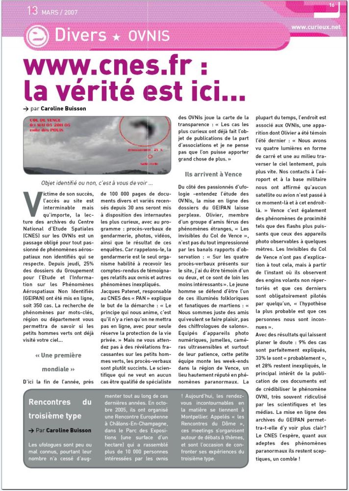 Retrouver l'intégralité de la revue sur www.curieux.net - semaine 13 2007