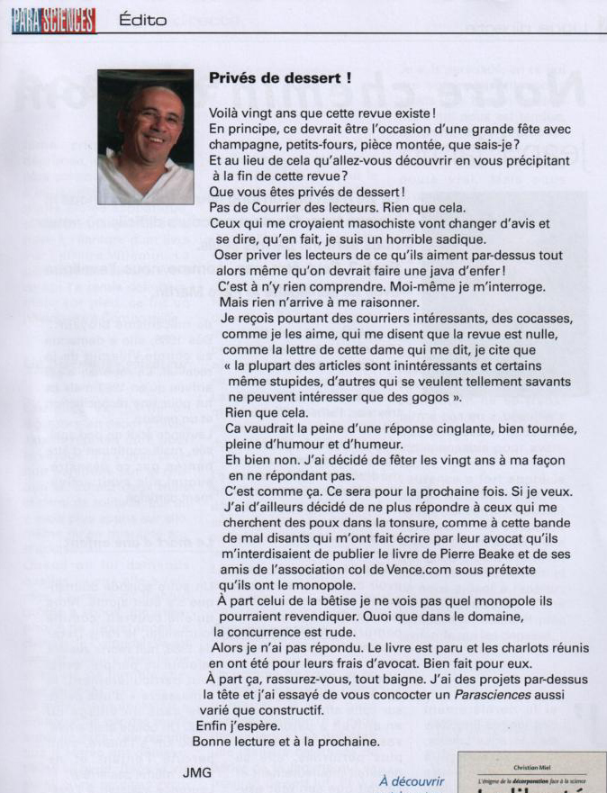 • Editorial du magazine “Parasciences” par JMG, où la “bande de mal disants - charlots réunis” sont accusés de biens de maux : dénigrement JMG (bis)